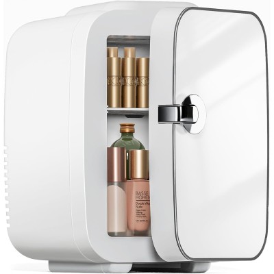 Mini Fridge, Portable Small Refrigerator 4L/6 Can Cooler & Warmer Compact Fridges for SkinCare, Food and Drinks, Bedroom, Dorm, Car, Office, White